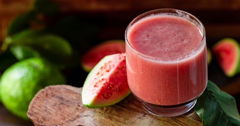 Douce et très parfumée, la goyave est l’un des fruits les plus emblématiques d’Amérique latine. Sa chair rose ou blanche donne un jus naturellement sucré et velouté, à l’arôme floral et fruité. Exceptionnellement riche en vitamine C (jusqu’à 5 fois plus qu’une orange), elle est idéale pour stimuler l’immunité, protéger la peau et améliorer la digestion. Un petit bijou tropical.