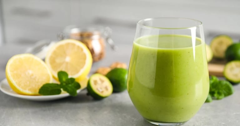 Peu connu en dehors de l’Amérique du Sud, la feijoa surprend par sa saveur originale, entre la goyave, l’ananas et un soupçon de menthe fraîche. Son parfum végétal et fruité est unique, tout comme sa texture légèrement granuleuse. Riche en fibres, en vitamine C et en minéraux, elle aide à renforcer les défenses naturelles et à améliorer la digestion. Un jus à découvrir absolument !
