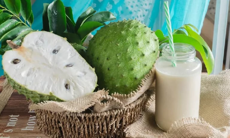 Le corossol (Guanabana en espagnol) séduit par sa texture onctueuse et son goût doux, subtil mélange entre la fraise, la noix de coco et la poire. Très apprécié en Colombie, ce fruit donne un jus à la fois rafraîchissant et réconfortant. Il est connu pour ses propriétés relaxantes et antioxydantes, ainsi que pour ses effets bénéfiques sur le sommeil et le système immunitaire. Une invitation à la détente tropicale.
